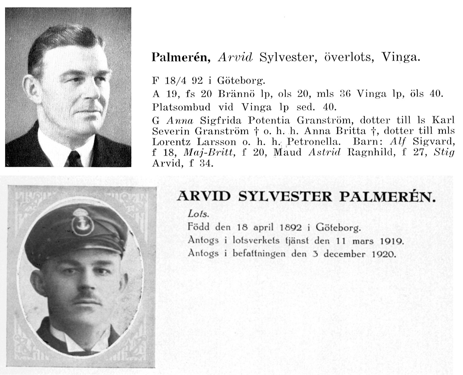 Född 1892 Styrsö, Gbg o Bohus län